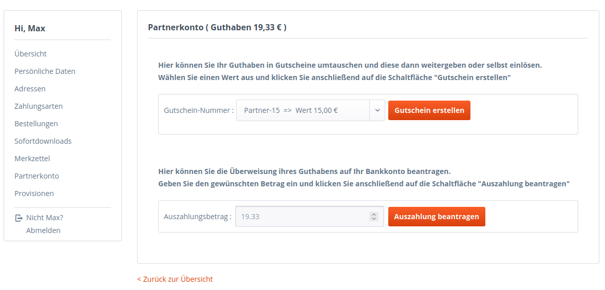 - Kunden können Provisionen gegen Gutscheine eintauschen.