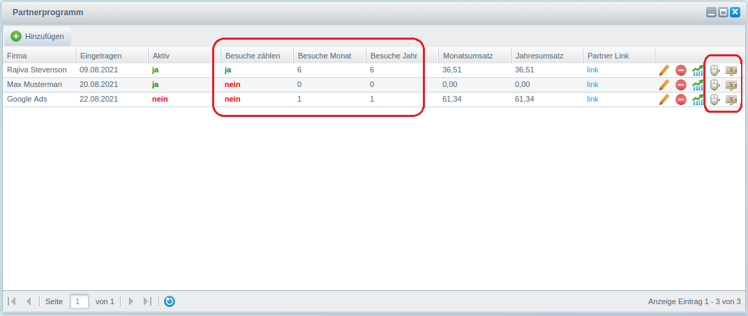 - Die Anzahl Besuche (Partnerprogramm Klicks) werden gezählt