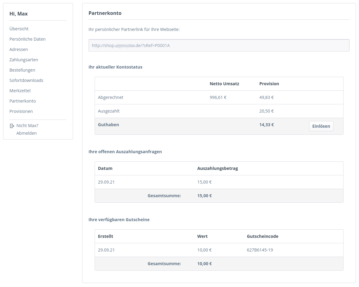 Dieses Plugin erweitert das Shopware eigene Partnerprogramm um folgende Funktionen: