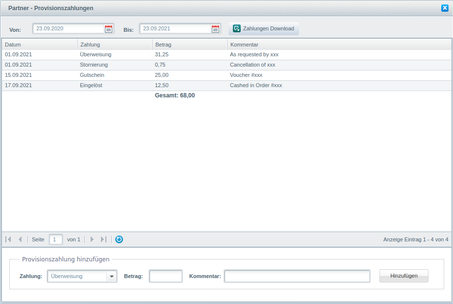 - Zahlungsabwicklung der Provisionen im Backend und im Kunden Frontend