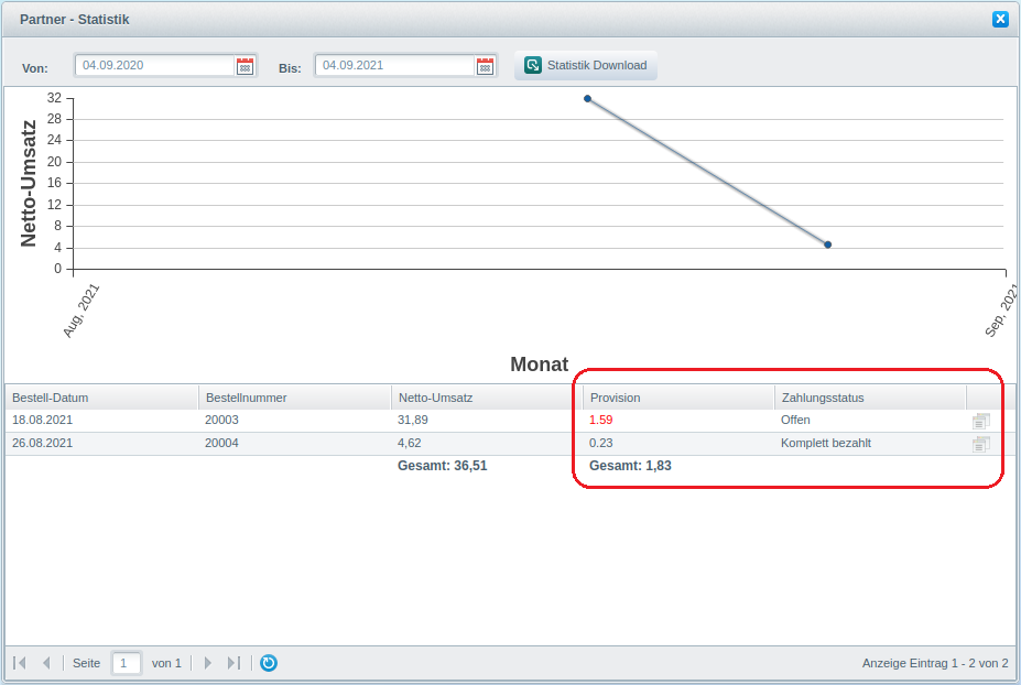- Unbezahlte Bestellungen werden nicht in der Partnerstatistik angezeigt.